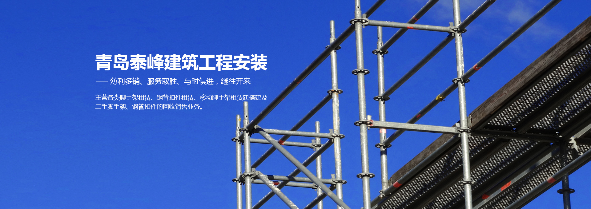 青島泰峰建筑工程安裝有限公司主營(yíng)各類腳手架租賃、鋼管扣件租賃、移動(dòng)腳手架租賃建搭建及二手腳手架、鋼管扣件的回收銷售業(yè)務(wù)。公司實(shí)力雄厚,擁有鋼管約3000噸、扣件70萬只、鋼笆7萬多片塔吊、人貨電梯多臺(tái);總資產(chǎn)達(dá)到1000多萬元。是一家具有腳手架搭建、水電安裝專業(yè)承包施工資質(zhì)的企業(yè),并成為青島市五金協(xié)會(huì)的會(huì)員單位。且多次參與高層建筑、建筑裝修、玻璃幕墻、橋梁、隧道、地鐵、電廠維修施工、造船等行業(yè)的施工,并獲得施工單位的一致好評(píng)。 人無信不立,有信則強(qiáng)公司以“薄利多銷、服務(wù)取勝”為經(jīng)營(yíng)宗旨...